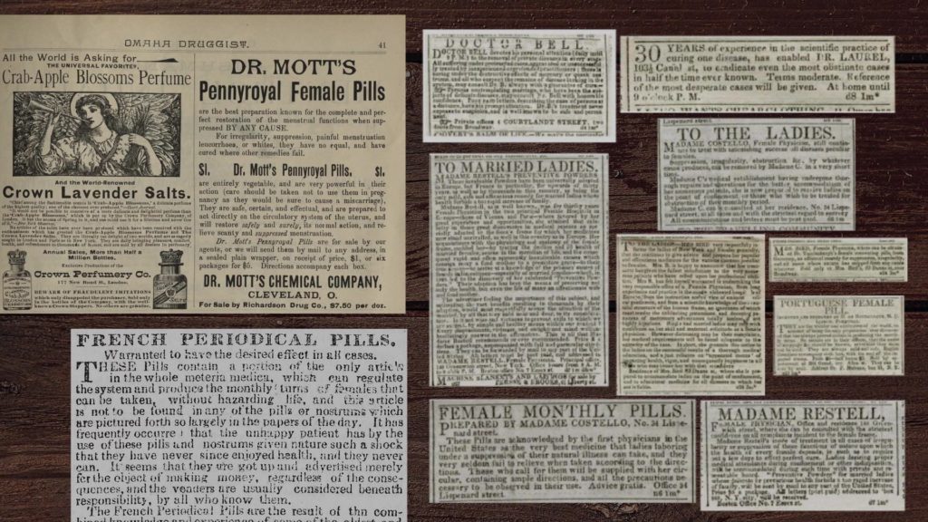Then there's the case of English woman Ann Lohman, who became a midwife known as Madame Restell. In 1839, she placed an ad in the New York Sun which read, Is it moral for parents to increase their families regardless of consequences to themselves, or the well-being of their offspring when a simple, easy, healthy and certain remedy is within our control? In 1847, Madame Restell was arrested and tried and demonized in the police Gazette and elsewhere, says graphic arts curator Lauren Hewes.